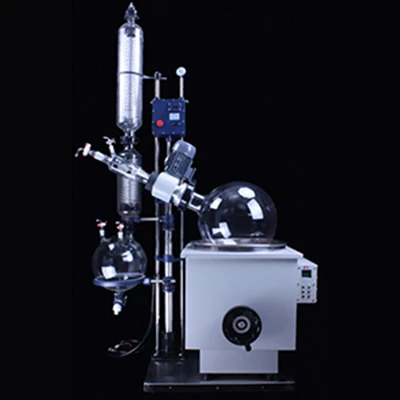 旋转蒸发器是在真空负压条件下,利用恒温加热,薄膜蒸发的原理研制而成。旋转蒸发器用无级调速使玻璃旋转瓶恒速旋转,物料在瓶壁形成大面积均匀薄膜,再由智能恒温水浴锅对旋转瓶均匀加热,在真空条件下高速蒸发,溶媒蒸气经**玻璃冷凝器冷却,回收于收集瓶。