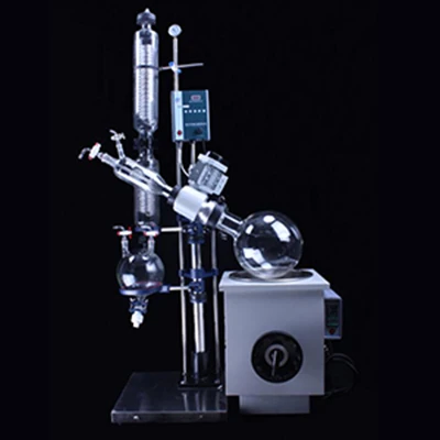 旋转蒸发器是在真空负压条件下,利用恒温加热,薄膜蒸发的原理研制而成。旋转蒸发器用无级调速使玻璃旋转瓶恒速旋转,物料在瓶壁形成大面积均匀薄膜,再由智能恒温水浴锅对旋转瓶均匀加热,在真空条件下高速蒸发,溶媒蒸气经**玻璃冷凝器冷却,回收于收集瓶。